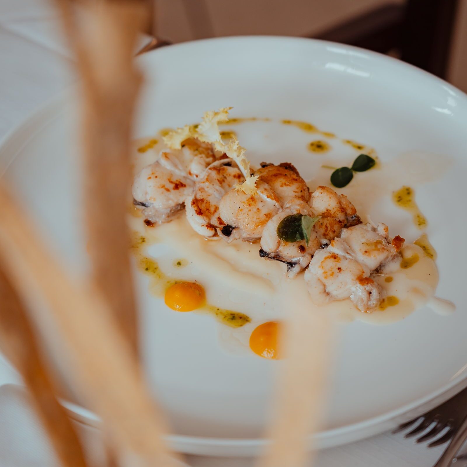 La cucina di Zafferano non si limita a soddisfare il palato: cura ogni dettaglio per trasformare un pasto in un momento speciale. Ogni piatto — dal mare o dalla terra — viene pensato con un occhio alla tecnica e un cuore alla tradizione. Accanto alla cucina, una cantina attenta seleziona vini provenienti da diverse regioni d’Italia, scelti per valorizzare ogni sapore e accompagnare l’esperienza gastronomica con armonia e carattere.